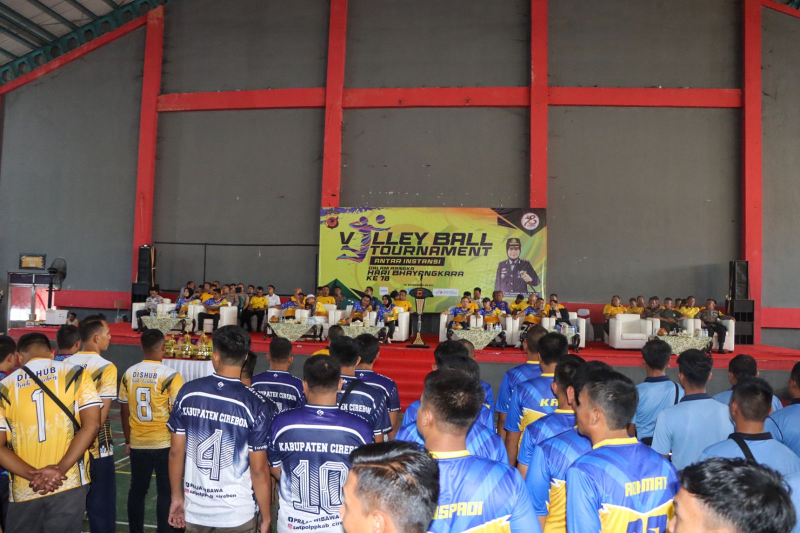 Sebanyak 18 tim bertanding dalam turnamen voli antar instansi yang digelar Polresta Cirebon untuk memperingati Hari Bhayangkara ke-78. Kapolresta Cirebon, Kombes Pol Sumarni, S.I.K, S.H, M.H, membuka turnamen voli tersebut di GOR Ranggajati Sumber.