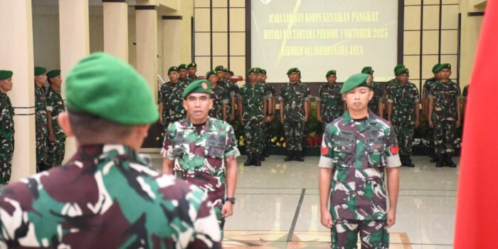 Madiun, Kompas86id.com – Sebanyak 40 prajurit Makorem 081/DSJ menerima kenaikan pangkat satu tingkat lebih tinggi. Kepada mereka, Danrem 081/DSJ Kolonel Arm Untoro Hariyanto mengingatkan akan konsekuensi dan tanggung jawab yang lebih dari waktu sebelumnya.