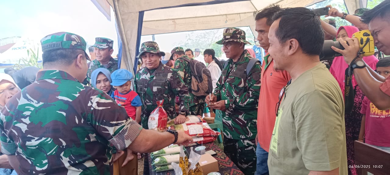 Didampingi oleh Danrem, Dandim Letkol Arm Khoirul Cahyadi, S.E., dan sejumlah perwira, Kasdam meninjau stan-stan pasar murah yang menyediakan berbagai kebutuhan pokok dengan harga terjangkau bagi masyarakat. Namun, bukan hanya sekadar meninjau, Kasdam justru mengambil langkah tak terduga dengan memborong seluruh dagangan yang ada di pasar murah tersebut.