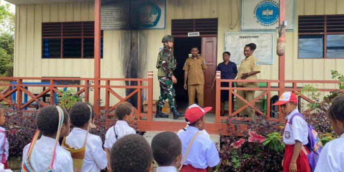 Anak Papua Cerdas Satgas Yonif 521/DY Hadirkan Senyum Anak Sekolah Bagikan Buku dan Alat Tulis di Distrik Apalapsili