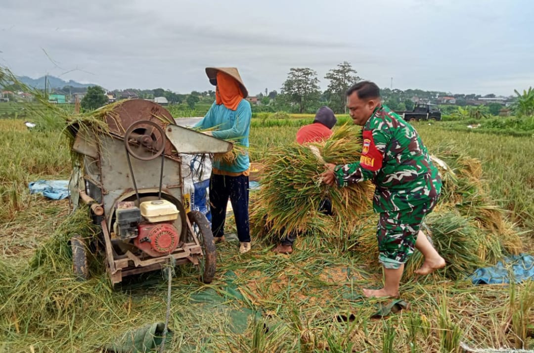 Babinsa Desa Jlegong Dampingi Panen Padi Petani di Dukuh Gilirejo