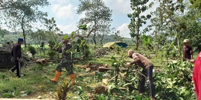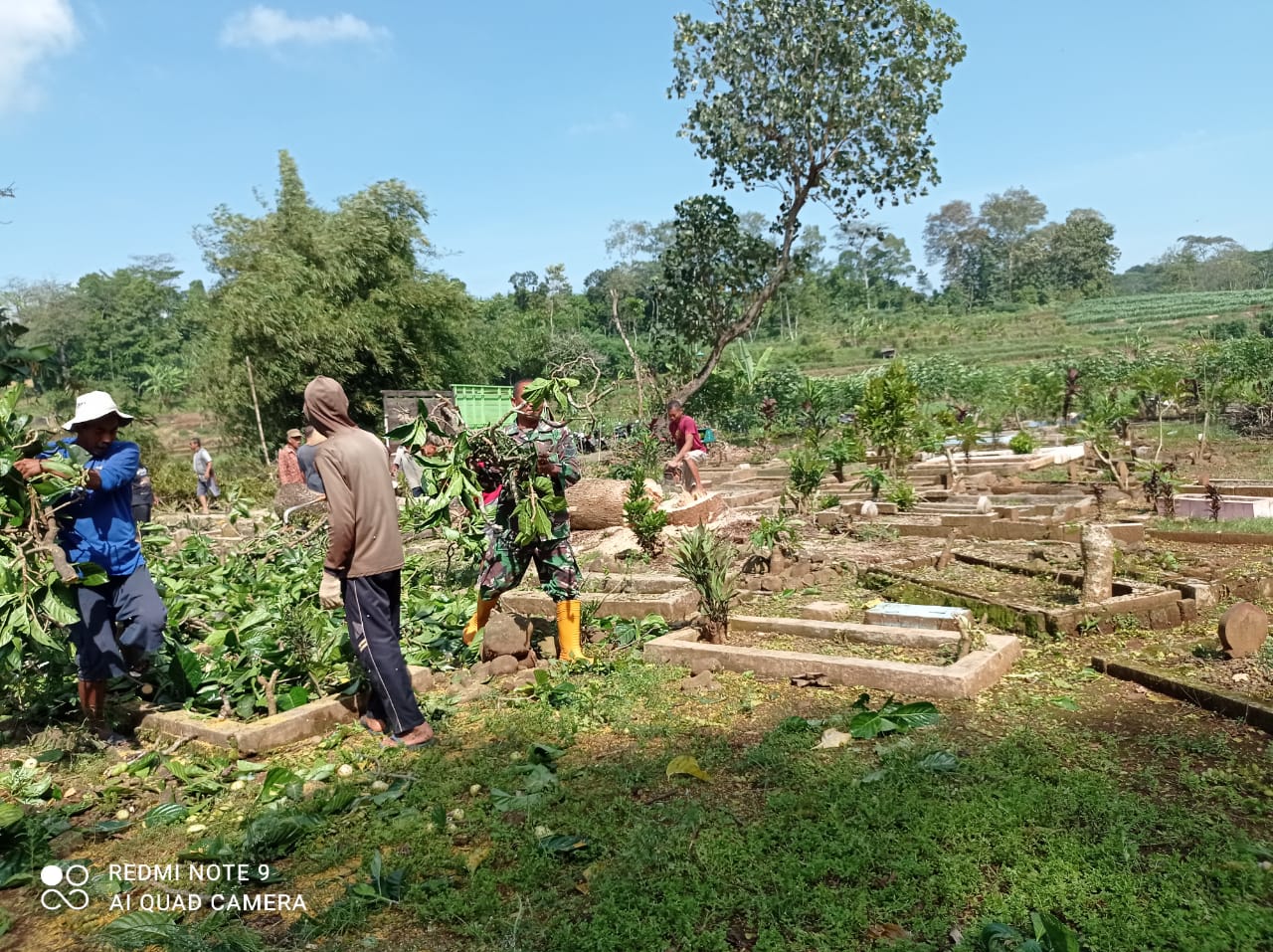 Babinsa Desa Klepu Bersama Warga Laksanakan Kerja Bakti di Makam Mbah Surobaut
