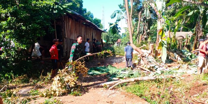 Beberapa warga lainnya turut membantu dalam pengangkutan dan penataan ranting-ranting pohon agar tidak mengganggu pengguna jalan.