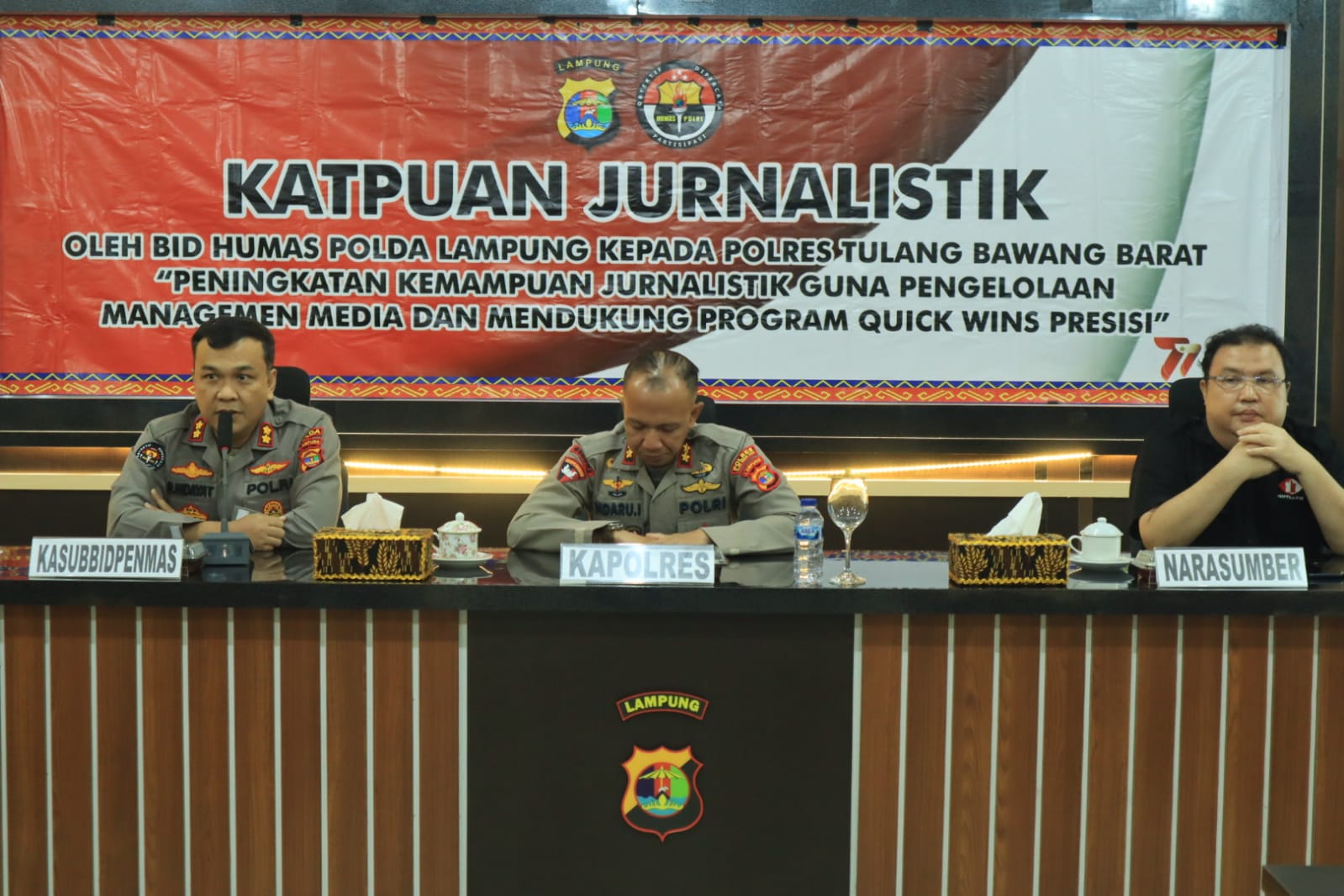 Kapolres Tulang Bawang Barat AKBP Ndaru Istimawan, S.IK, berharap para peserta bisa menambah ilmu dan wawasan dari pelatihan ini sehingga harapannya kedepan anggota Polres Tulang Bawang Barat dan Jajaran mempunyai skill di dunia jurnalistik, sehingga bisa aktif mengisi berita-berita positif dan baik di media massa, khususnya media sosial, karena tidak bisa dipungkiri media sosial perlu dijaga agar kondusif.