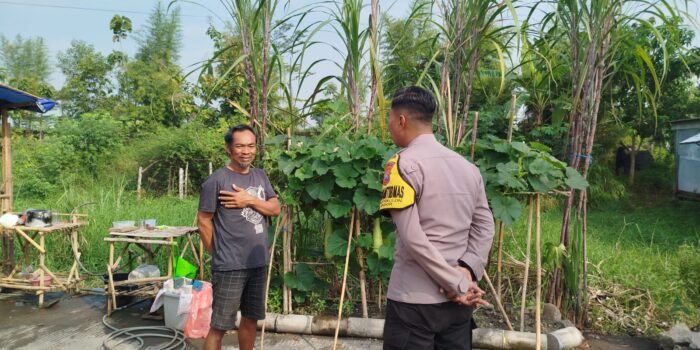 Di lapangan, Bripka Rudy Erwanto selaku Bhabinkamtibmas Desa Bagorkulon melakukan pendampingan dan pemantauan langsung budidaya tanaman cabai dan labu air yang ditanam di pekarangan warga.
