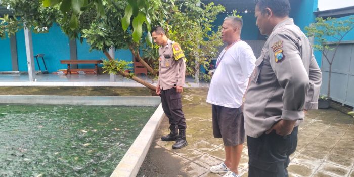 Bhabinkamtibmas Desa Pehserut, Aiptu Sarto, rutin melakukan pemantauan dan memberikan edukasi terkait pengelolaan kolam ikan kepada warganya.