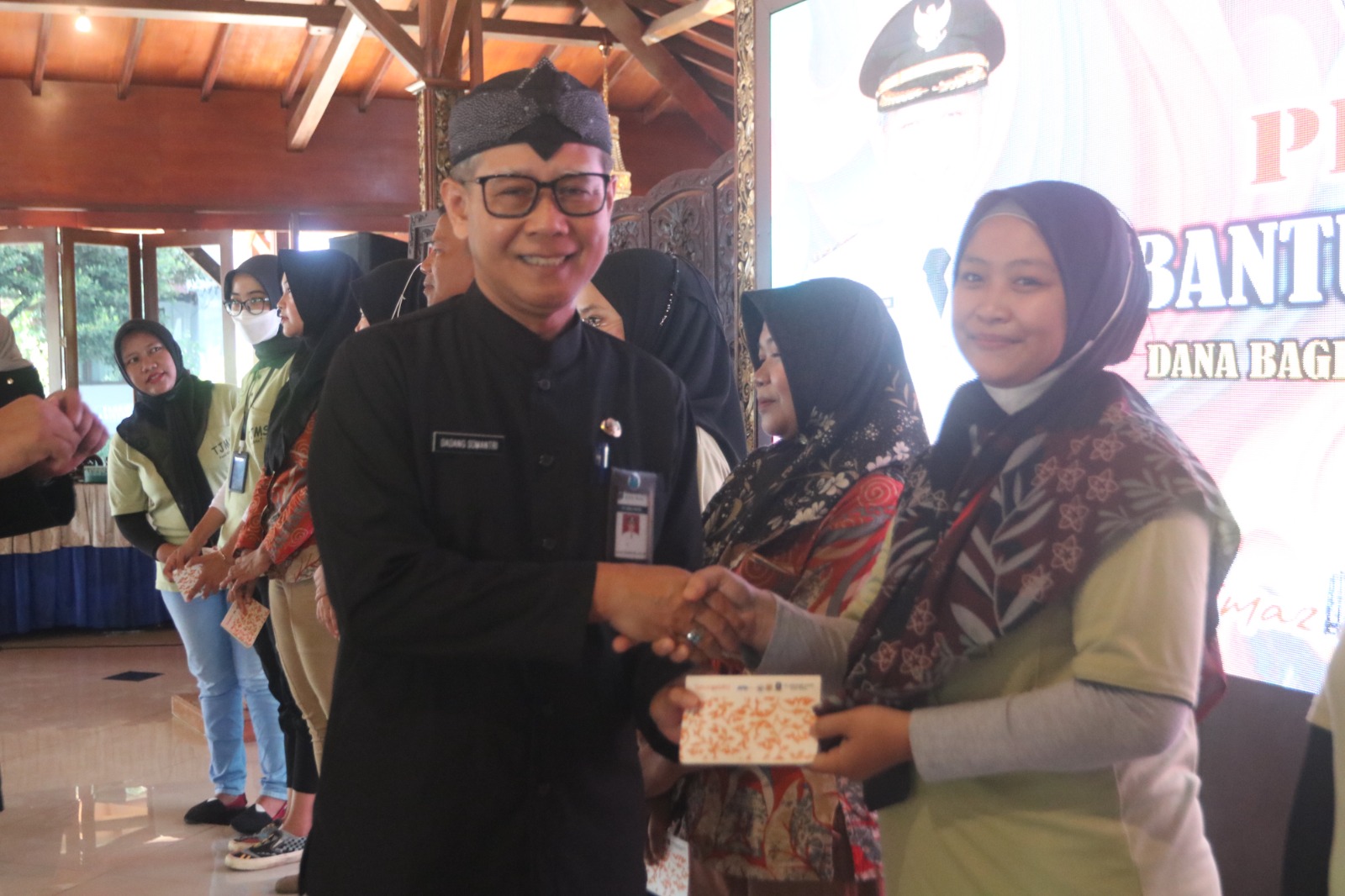 Penjabat (Pj.) Wali Kota Tegal, Dadang Somantri secara simbolis memberikan Bantuan Langsung Tunai Dana Bagi Hasil Cukai dan Hasil Tembakau (BLT DBHCHT) kepada buruh pabrik rokok warga Kota Tegal di Pendopo Ki Gede Sebayu, Kamis (06/06) pagi.