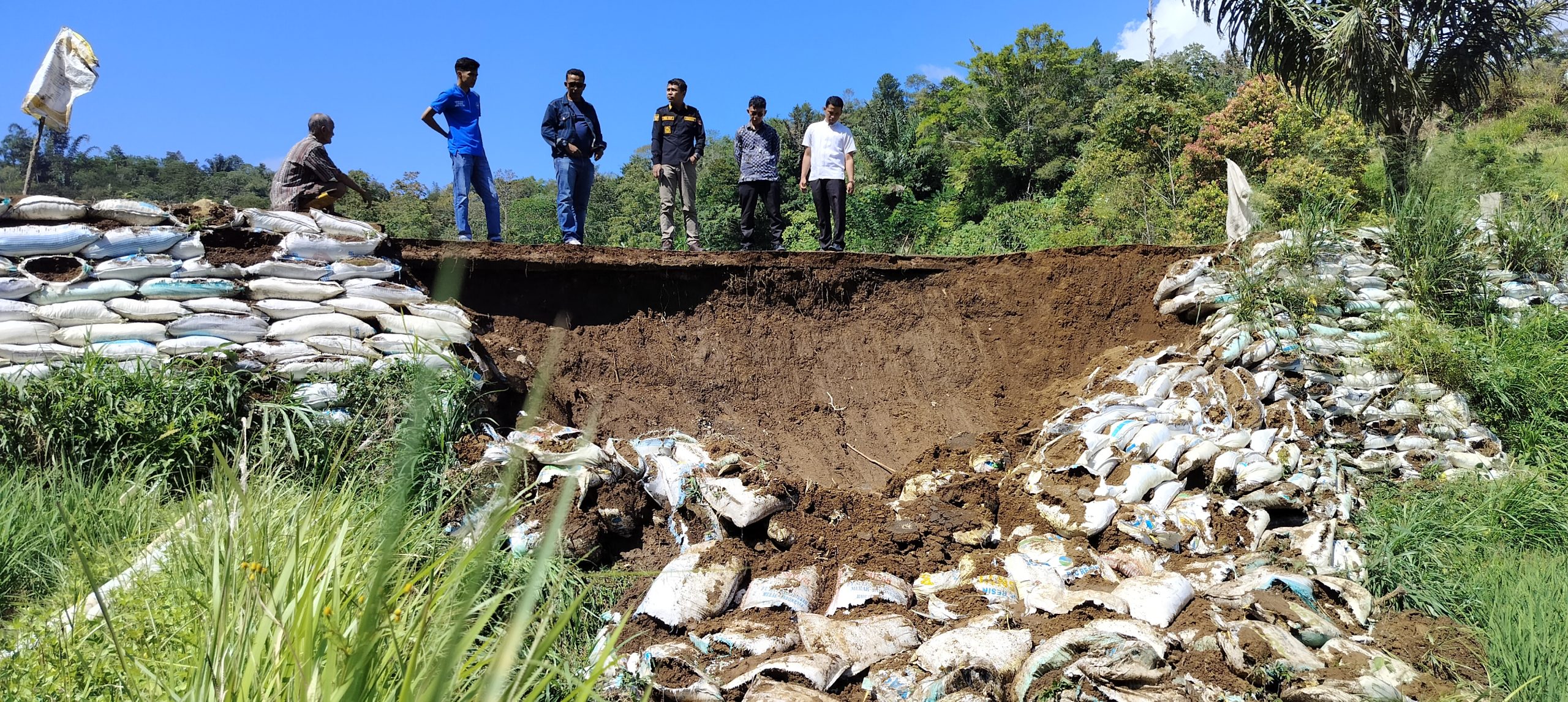 “Kalau harus bergotong-royong lagi membangun penahan dari urugkan karung pasir, rasanya sia-sia saja Pak, karena pekerjaan ini sudah kami lakukan beberapa kali, namun saat curah hujan tinggi tetap saja amblas dan longsor lagi Pak”, keluh Mak Pakiah.