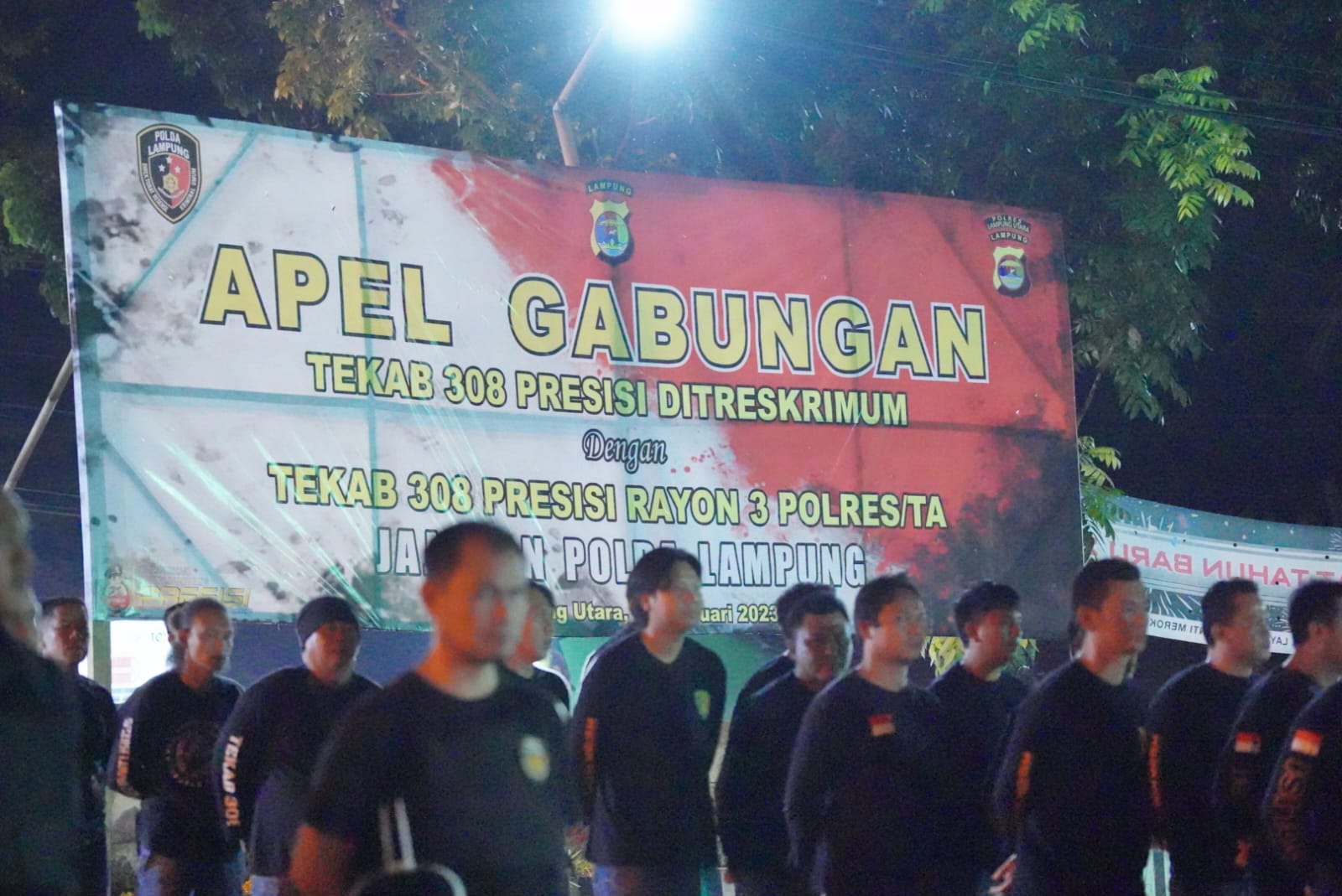 Lampung Utara,mediakompas86.com Ditreskrim-um Polda Lampung menggelar apel gabungan Tim TEKAB 308 Presisi Rayon III, terdiri dari Polres Lampung Utara, Polres Lampung Barat, Way Kanan dan Polres Pesisir Barat bertempat di halaman Rumah Makan Taruko Jaya Kota Bumi pada Selasa malam 22/2/2023.