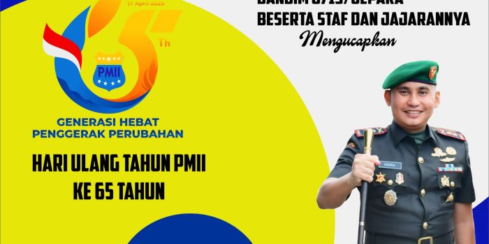 JEPARA, kompas86id.com – Komandan Kodim 0719 / Jepara, Letkol Arm Khoirul Cahyadi, S.E., beserta staf dan jajaran, menyampaikan ucapan selamat Hari Lahir (Harlah) ke-65 kepada Pergerakan Mahasiswa Islam Indonesia (PMII). Sebagai bentuk penghormatan dan simbol doa, Dandim mengirimkan tanaman Serut hidup ke kantor PC PMII Jepara, menggantikan bentuk ucapan konvensional seperti karangan bunga dari streofoam. pada Rabu, (16/4/2025).