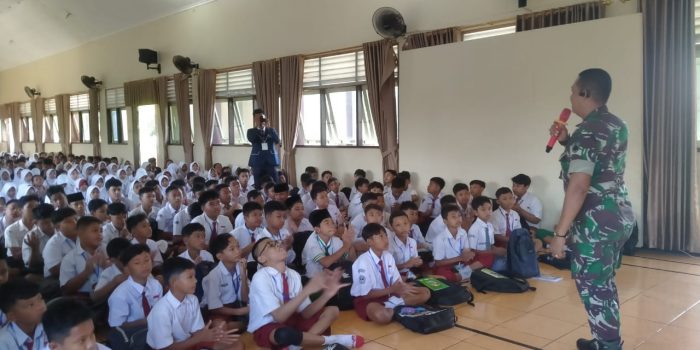 Dalam penyampaiannya, Danramil menekankan bahwa bela negara tidak hanya dilakukan oleh prajurit TNI, namun juga dapat diwujudkan oleh para pelajar melalui sikap disiplin, rajin belajar, dan menjaga persatuan.