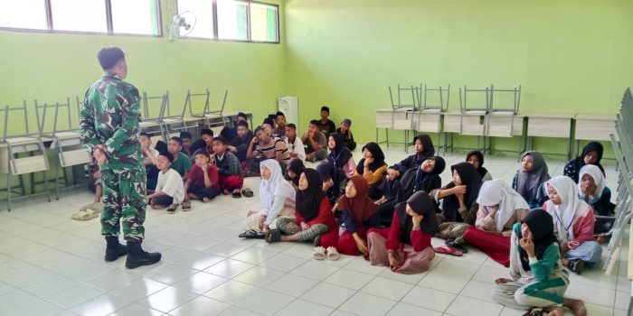 KOTA CIREBON, kompas86id.com – Dalam upaya menanamkan nilai-nilai cinta tanah air sejak dini, Danramil 1403/Lemahwungkuk, Kapten Inf Karyono, didampingi oleh Babinsa Kelurahan Kesepuhan, memberikan materi wawasan kebangsaan kepada para siswa dan siswi tingkat SMP Sekolah Rakyat yang berlokasi di Pronggol, Kelurahan Pegambiran, Kecamatan Lemahwungkuk, Kota Cirebon. Selasa, (22/7/2025).
