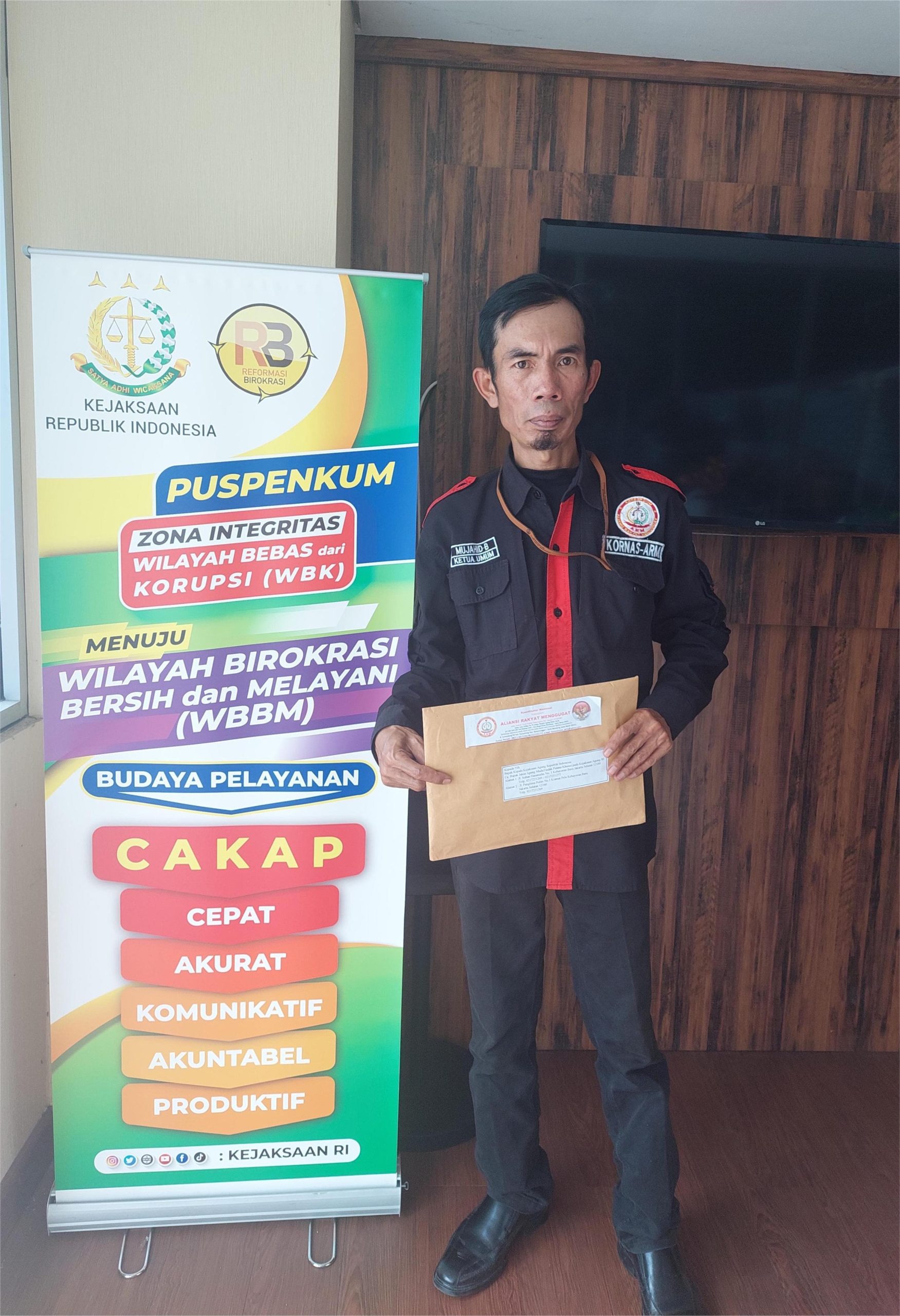 Ketua Umum ARM Furqon Mujahid Bangun sesaat sebelum menyerahkan laporan resmi ke Kejaksaan Agung Republik Indonesia pada hari Jum’at 01 agustus 2025