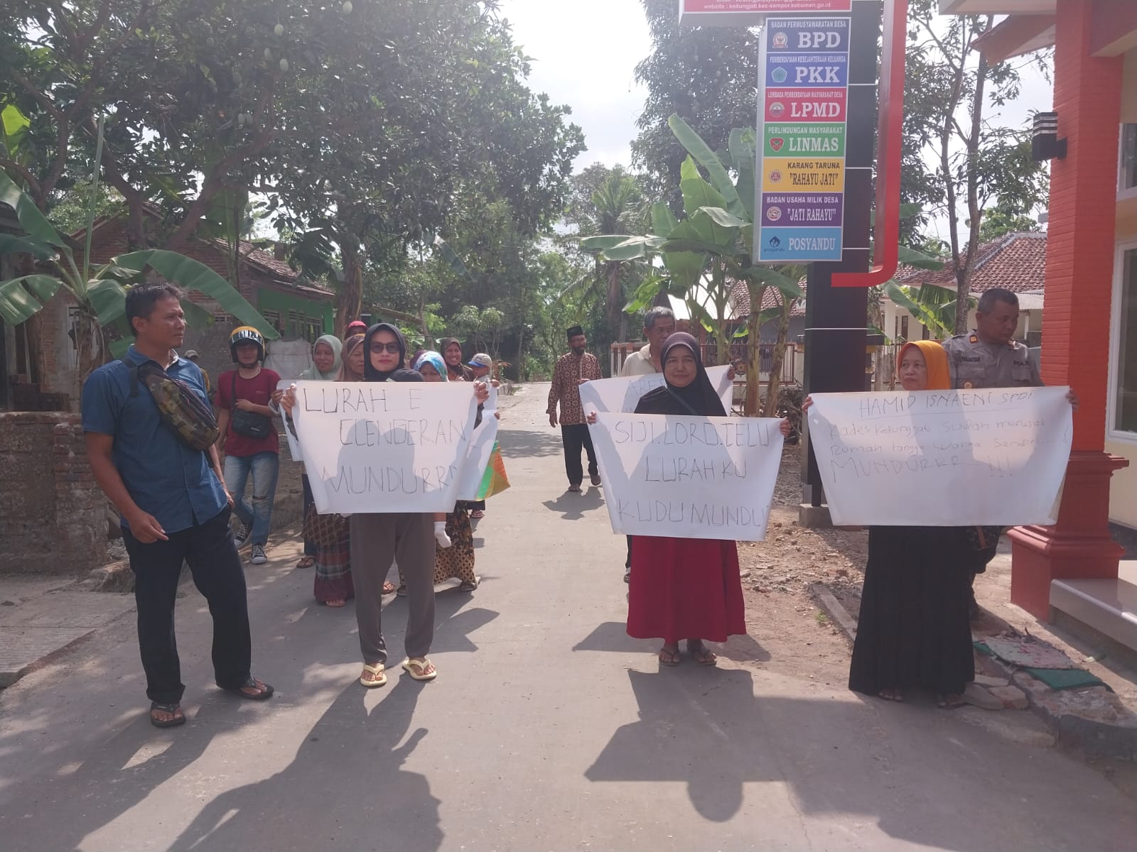 Saya menyesal dulu mendukung bapak Kades hamid yang berjanjia akan memeperbaiki tatapemerintahan desa tapi malah berbuat tidak senonoh selinggkuh dengan warganya sendiri, mukai hari ini pak kades harus mengundurkan diri ujar warga yang orasi.