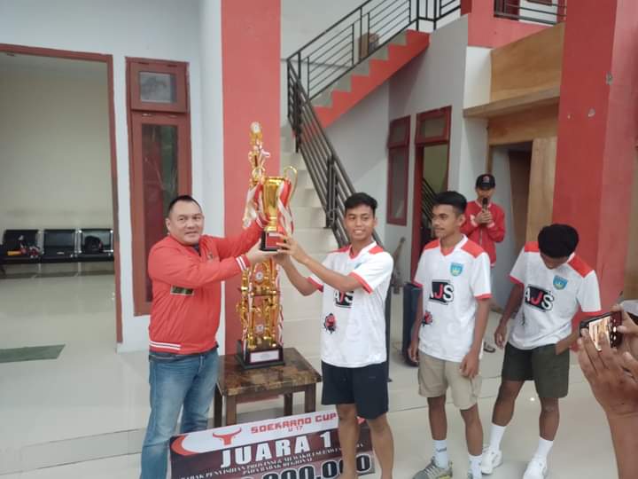 Sambut kedatangan atlit sepakbola PERSIS Sangihe KU-17 Senin(16/10/2023) yang menjuarai KU 17 Soekarno Cup zona Sulawesi Utara di kantor Sekretariat DPC PDIP.
