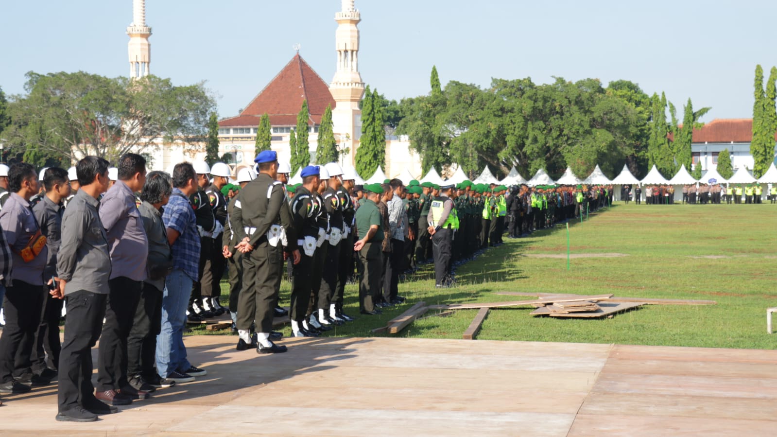 Pekalongan (Jateng) mediakompas86.com Seribu personel TNI-Polri melaksanakan apel gabungan dalam rangka Apel Gelar Pasukan Kunjungan Kerja Presiden RI Ir. H. Joko Widodo di Kabupaten Pekalongan yang digelar di lapangan alun-alun Kajen, Pekalongan, Selasa (12/12).