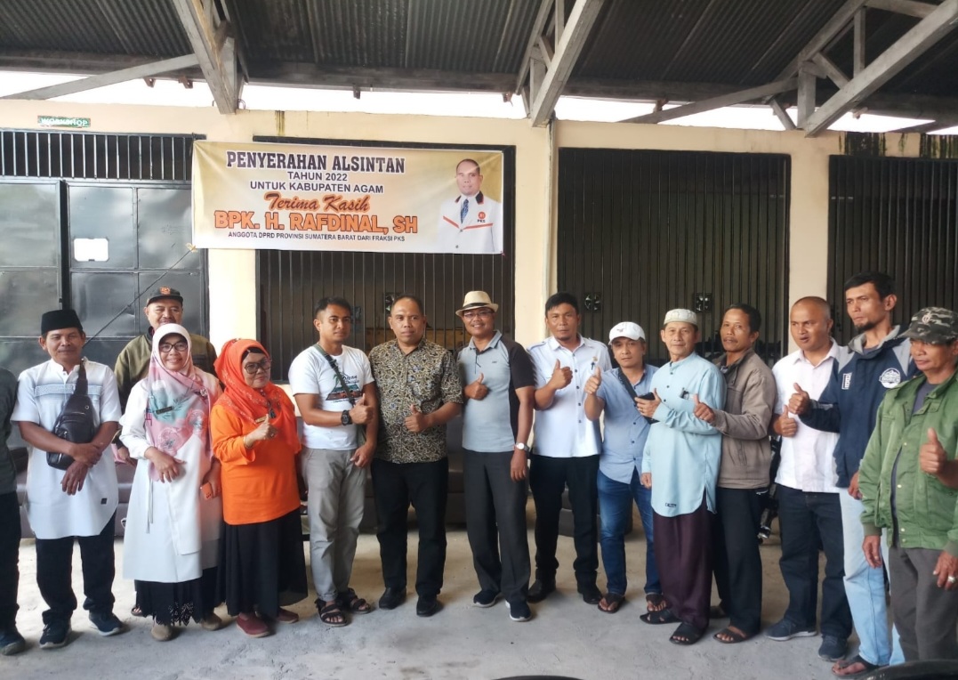 Rafdinal SH.Anggota DPRD Provinsi Sumbar menyerahkan bantuan alat mesin pertanian (alsintan) berupa Hand tracktor kepada 20 Kelompok Petani (Gapoktan) Agam, Rabu (07/12/2022).