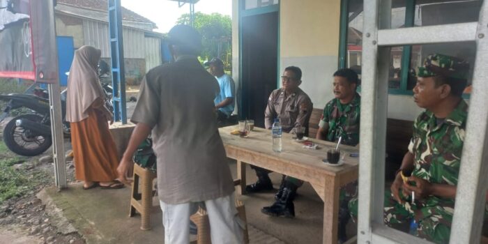 Anak-anak tampak riang bermain di sekitar warung, sementara warga dewasa saling berbincang dengan anggota TNI, aparat desa, dan tokoh masyarakat.