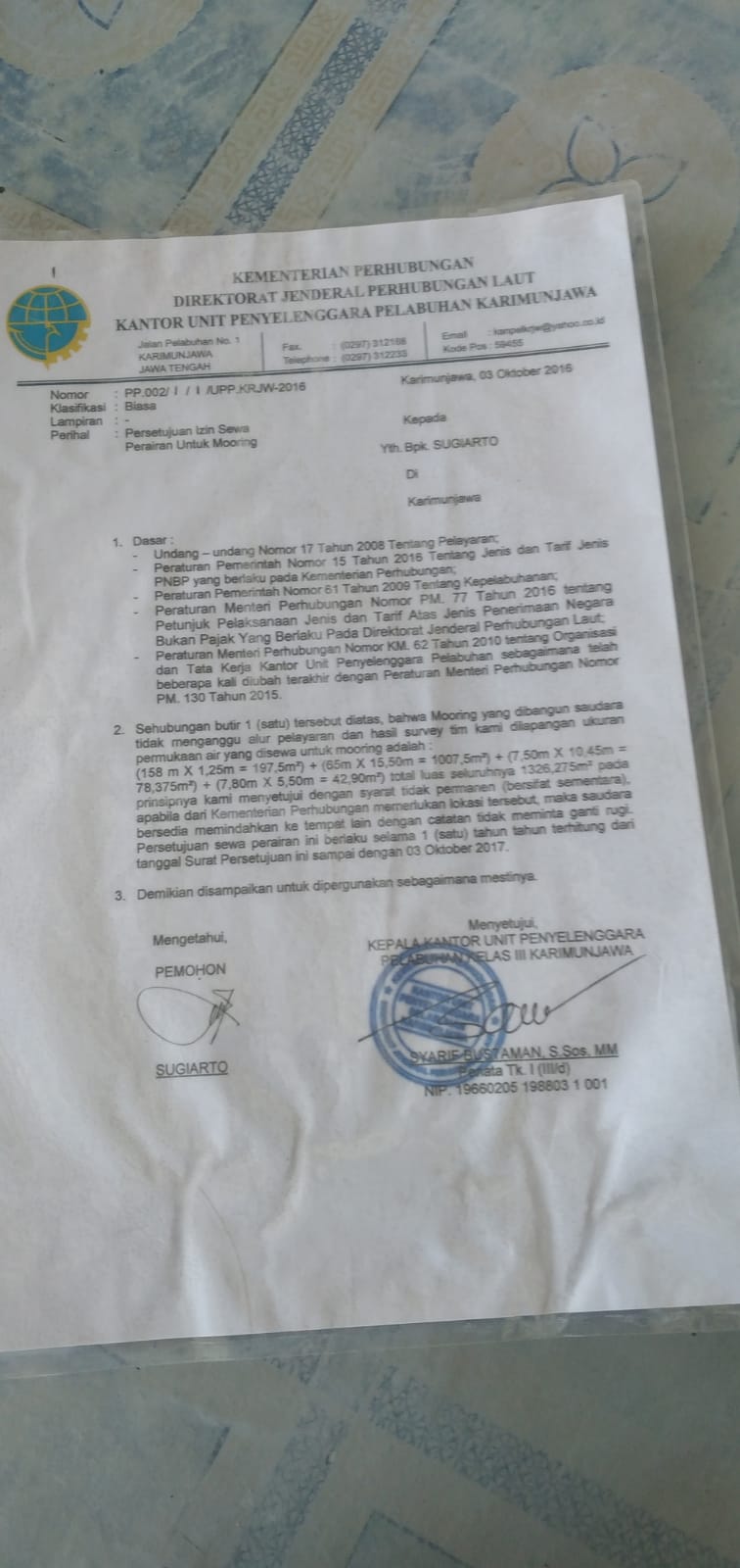 Sementara itu pengelola Hotel Asri Siti Khusnul Khotimah saat dikonfirmasi mengatakan kepada awak media bahwa mempunyai ijin, namun saat ditunjukan surat ijin tersebut, ternyata surat ijin itu adalah surat ijin sewa perairan untuk mooring itupun surat yang sudah tidak berlaku lagi karena dalam surat tersebut tertulis berlaku hingga 3 Oktober 2017.