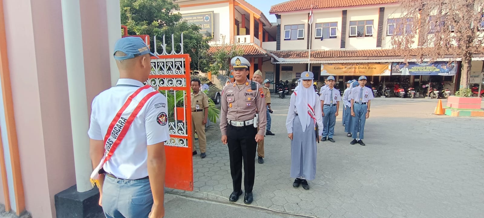 Kedatangan Kasat Lantas Polres Tegal Kota beserta jajarannya pada upacara tersebut dalam rangka sosialisasi Peraturan Tertib Berlalu Lintas.