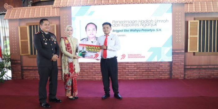 Dalam kesempatan tersebut, Kapolres menyerahkan hadiah umroh secara simbolis kepada Brigadir Eko Wahyu Prasetyo dari Satreskrim, yang terpilih melalui undian dari puluhan anggota berprestasi sebagai bentuk apresiasi atas dedikasinya dalam menjalankan tugas.