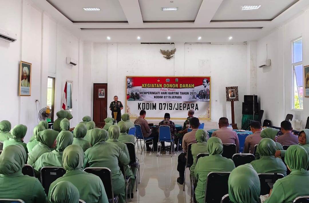 JEPARA, kompas86id.com – Dalam rangka memperingati Hari Kartini Tahun 2025, Kodim 0719 / Jepara menggelar kegiatan bakti sosial donor darah yang berlangsung di Aula Makodim 0719 / Jepara, Kamis (24/4/2025). Kegiatan ini merupakan bentuk kepedulian TNI terhadap masyarakat serta upaya nyata dalam membantu penyediaan stok darah bagi PMI dan masyarakat yang membutuhkan.