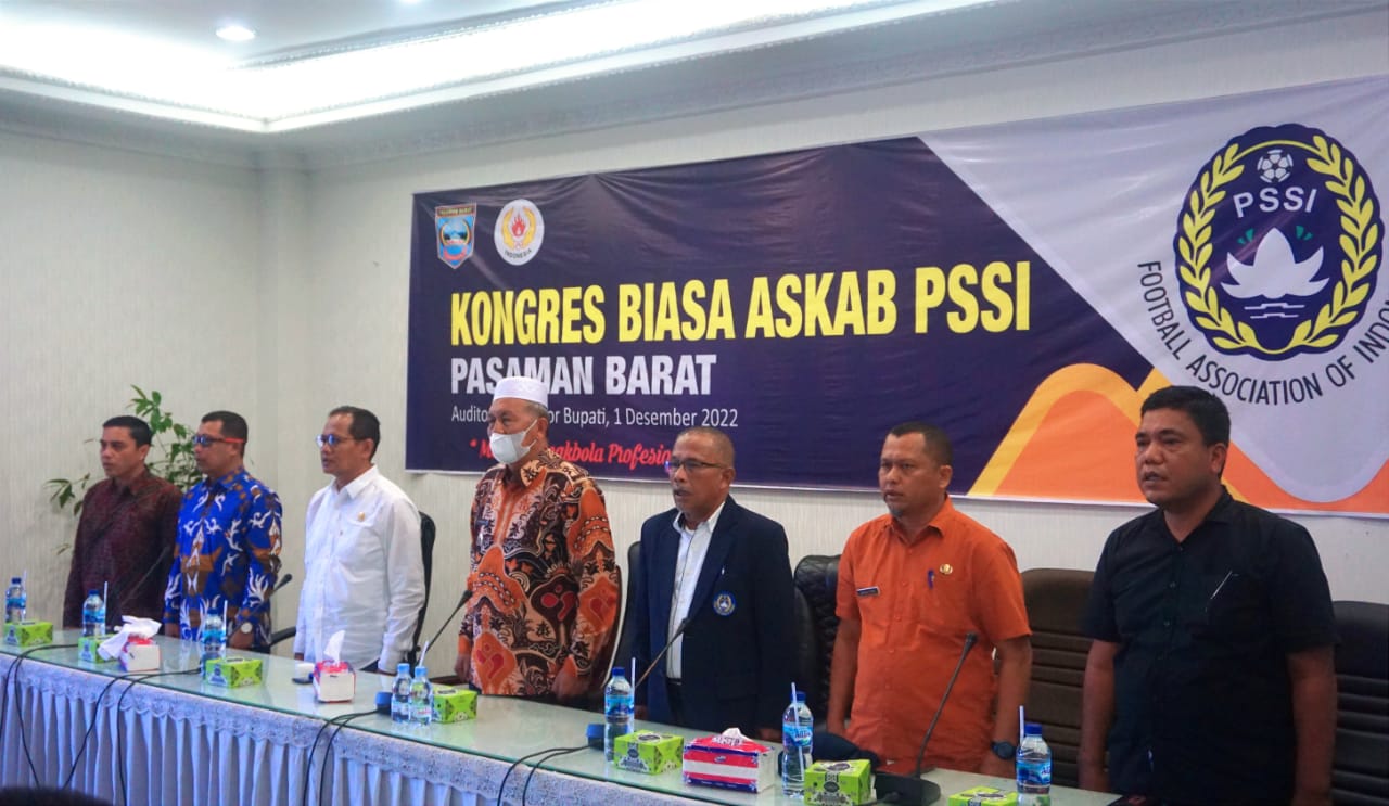 Pasaman Barat, mediakompas86.com. Bupati Pasaman Barat (Pasbar) Hamsuardi menghadiri sekaligus membuka Kongres Biasa Asosiasi Kabupaten (Askab) Persatuan Sepakbola Seluruh Indonesia (PSSI) Kabupaten Pasaman Barat, di auditorium kantor bupati setempat, Kamis (1/12).