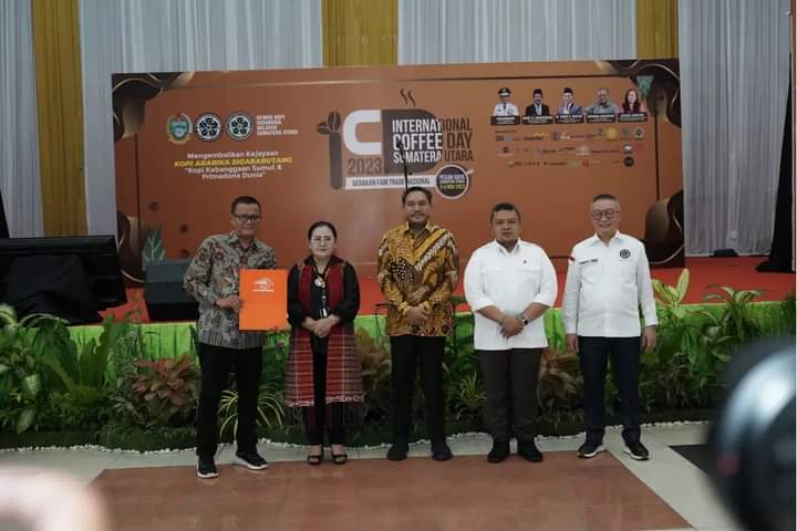 Pakpak Bharat,mediakompas86.com | Bupati Pakpak Bharat, Franc Bernhard Tumanggor menerima Piagam Penghargaan atas kontribusi dalam upaya pengembangan kopi arabika di Kabupaten Pakpak Bharat. Piagam Penghargaan ini diserahkan oleh Penjabat Gubernur Sumatera Utara, Hassanudin dalam acara Pembukaan Peringatan Hari Kopi Dunia/International Coffee Day (ICD) ke-9 Tahun 2023 di Area Pekan Raya Sumatera Utara, Medan (03/11/23).