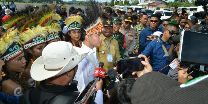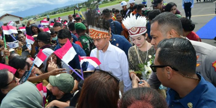 Mengenakan mahkota khas Kasuari, Wapres dan Ibu Selvi kemudian disambut dengan tarian adat Papua yang memukau, “Teras Seni”, sebagai bagian dari penghormatan budaya dan simbol kerja sama pembangunan antara pemerintah pusat dan masyarakat Papua Barat.