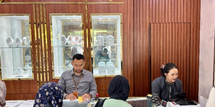 BANDUNG – Paska libur Lebaran Idul Fitri 1446 Hijriah, masyarakat berbondong-bondong berburu emas untuk berinvestasi, salah satunya di outlet Pegadaian Galeri 24 Outlet Pungkur – Bandung, Selasa (8/4). Momentum ini terjadi lantaran kondisi ekonomi yang tak menentu, sehingga masyarakat lebih memilih instrumen investasi yang bersifat safe haven.