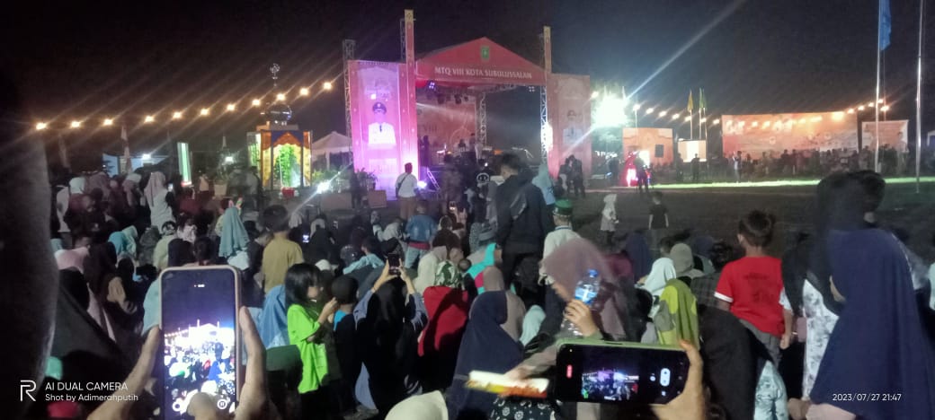 SUBULUSSALAM,mediakompas86.com- Malam penghujung penutupan Musabaqoh Tilawatil Quran (MTQ) yang ke VIII, ramai di kunjungi warga, di Kecamatan Penanggalan, Kota Subulussalam, Aceh.