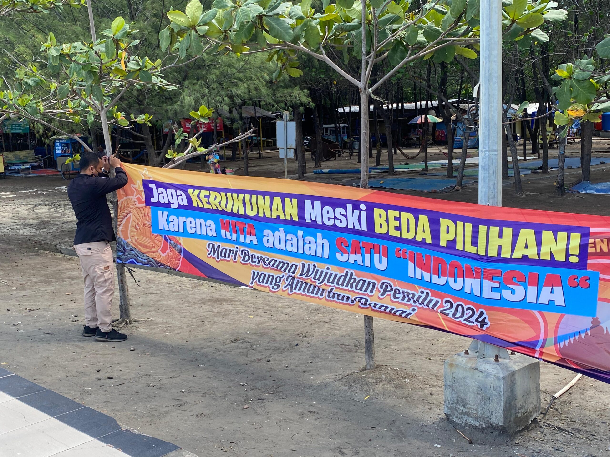 Melalui Pemasangan Spanduk, Satgas Humas Sosialisasikan Tentang Pemilu Damai
