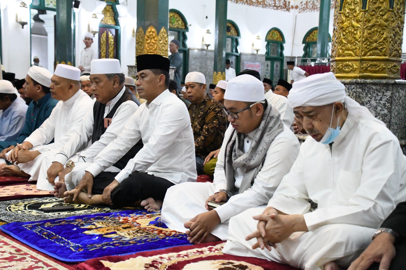 Diawali sholat subuh secara berjamaah, khotmul Qur’an dan tausiah di Masjid Agung Sultan Mahmud Badarudin Palembang. kegiatan Istighatshah dilaksanakan secara Virtual pada pukul 07.30 WiB.