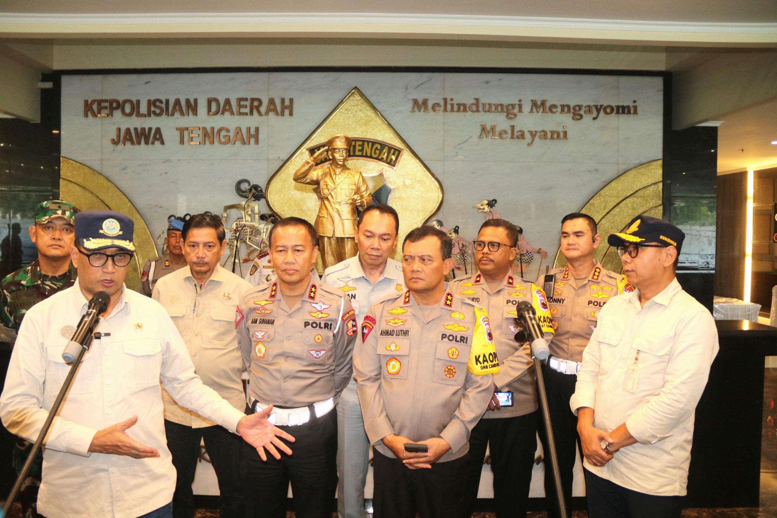 Kesiapan Polda Jateng dalam menghadapi arus mudik dan balik Lebaran 2024 mendapat apresiasi dari Menteri Perhubungan Budi Karya Sumadi. Hal itu disampaikan dalam keterangan pers usai mendengar paparan Kapolda Jateng Irjen Pol Ahmad Luthfi di Mapolda Jateng pada Minggu, (31/3/2024) siang.