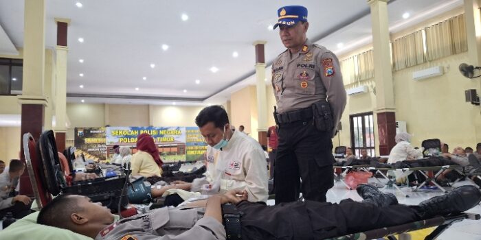 Kepala SPN Polda Jawa Timur, Kombes Pol Agus Wibowo, S.I.K., memberikan teladan dengan menjadi salah satu pendonor pertama.
