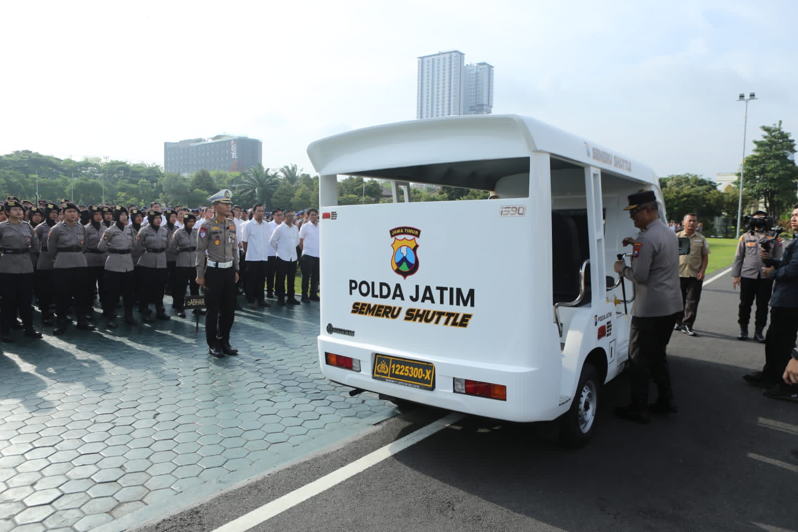 Kali ini, Kapolda Jawa Timur, Drs. Irjen Pol Imam Sugianto,M.Si didampingi Wakapolda Jatim, Brigjen Pol Pasma Royce, didampingi pejabat utama (PJU) Polda Jatim menyerahkan mobil shuttle semeru ke sentra pelayanan kepolisian terpadu (SPKT) Polda Jatim.