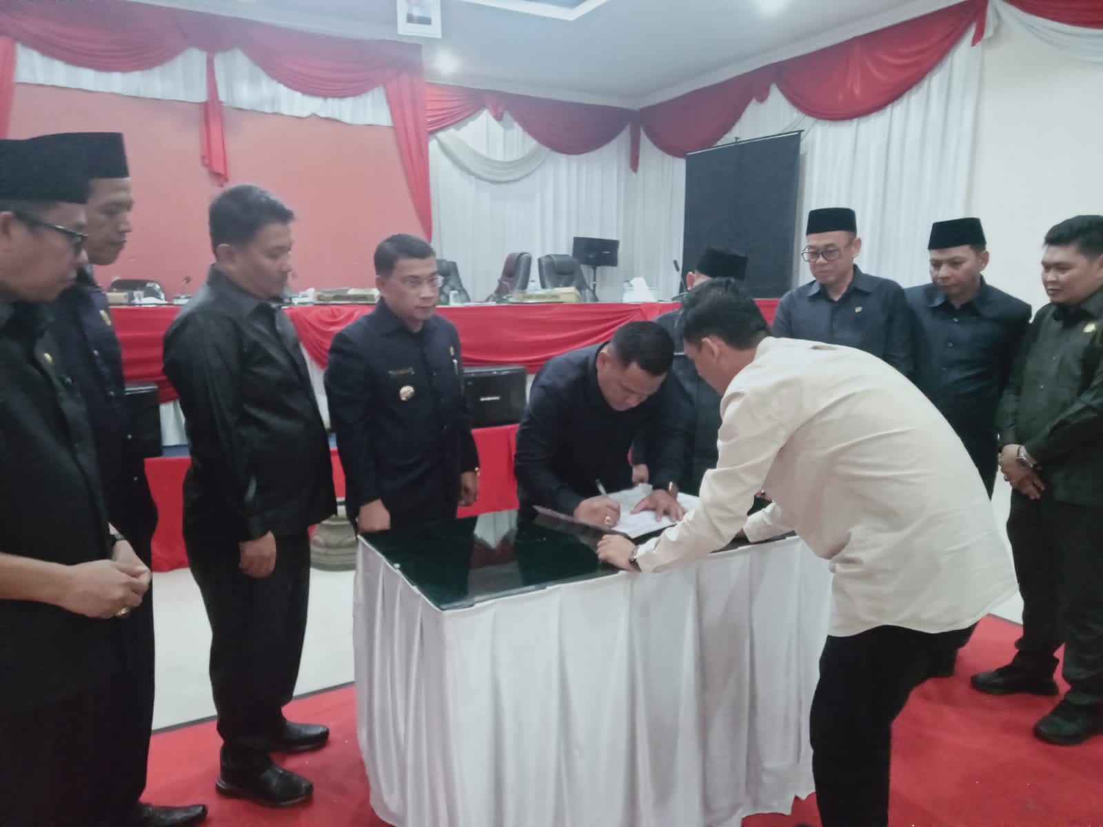 Ketua DPRD Muratara Efriansyah melakukan penandatanganan pada rapat paripurna DPRD Kabupaten Muratara