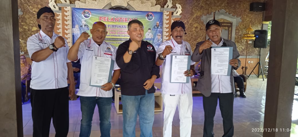 NR. Ichang Rahardian, SH. selaku ketua umum IWO Indonesia menetapkan Anton Nurcahyono sebagai ketua DPW IWOI Provinsi Daerah Istimewa Yogyakarta. Minggu (18/12/2022) bertempat di Cafe Kalahari, Kepek Kapanewon Wonosari, Kabupaten Gunungkidul, dilantik dan disumpah seluruh pengurus DPW DIY oleh Ketua Umum DPP.