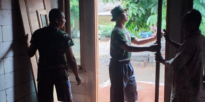 Bersama warga dan perangkat desa, anggota TNI dari Koramil wilayah Keling bekerja bergotong royong membangun rumah Ibu Tinah, yang sebelumnya berada dalam kondisi sangat memprihatinkan.