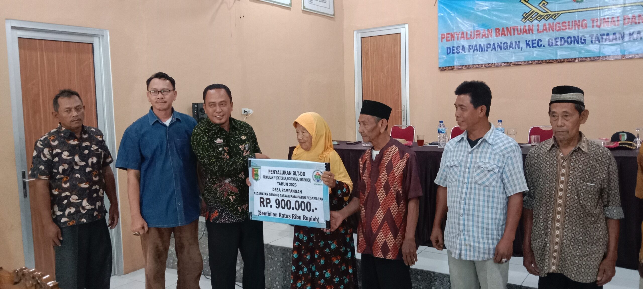 Pemerintah desa pampangan menyalurkan BLT DD Kepada 26 KPM yang di Anggarkan Sebesar sepuluh persen di tahun 2023, pembagian Tersebut di bagikan Secara simbolis, di kantor Desa pampangan,kecamatan gedong Tataan kabupaten pesawaran. Jum’at (01/12/2023)