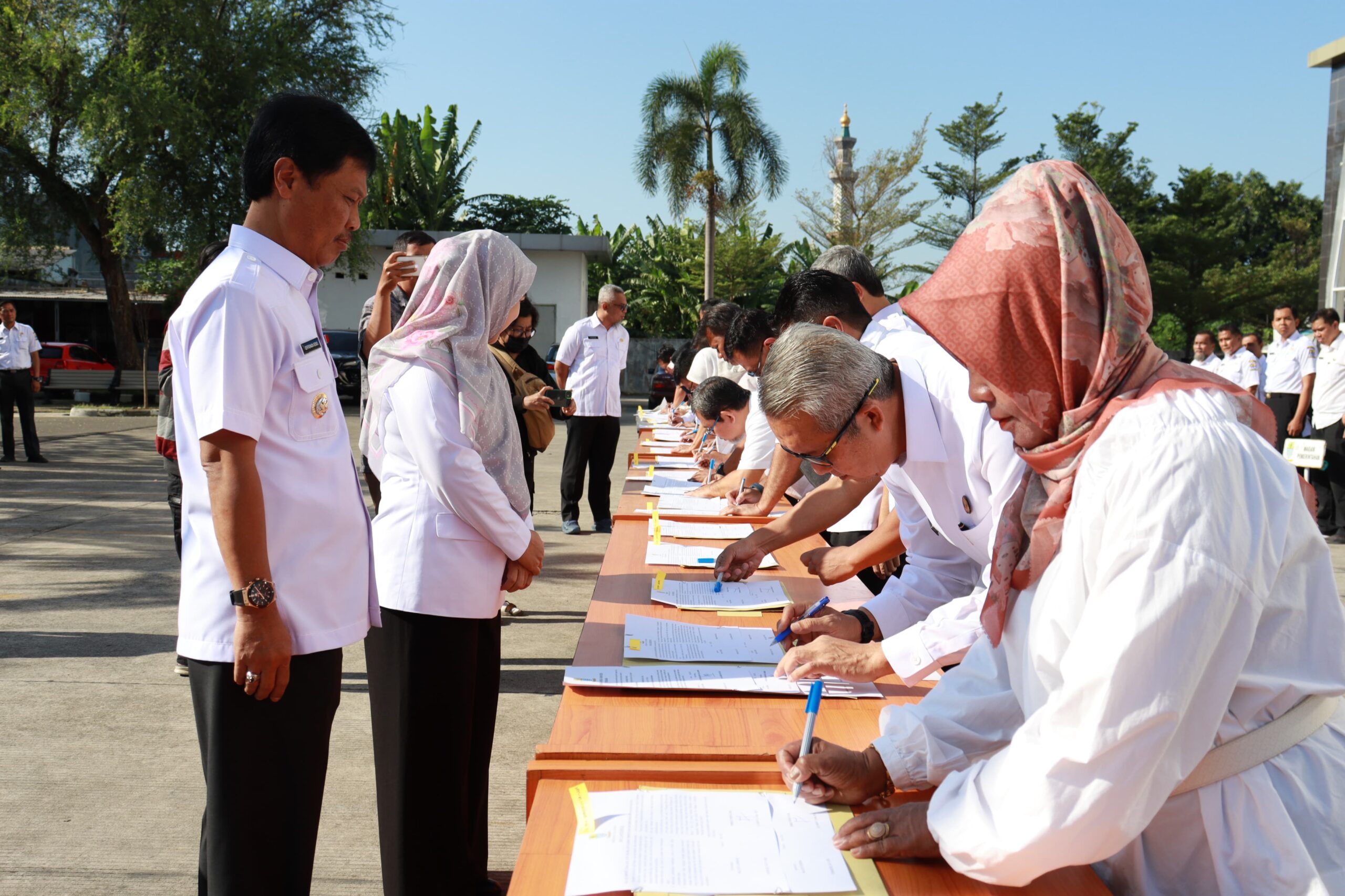 Ia menjelaskan bahwa Pakta Integritas mencerminkan nilai moral dan etika jabatan, sementara Perjanjian Kinerja adalah rencana nyata yang dapat diukur, dievaluasi, dan dipertanggungjawabkan.