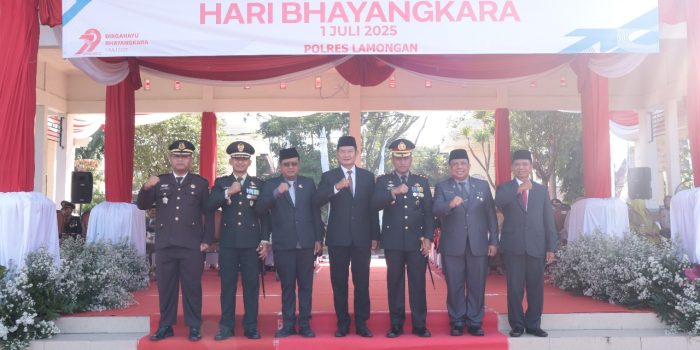 Lamongan, Kompas86id.com – Polres Lamongan menggelar upacara peringatan Hari Bhayangkara ke-79 yang berlangsung khidmat di Alun alun Kabupaten Lamongan pada Selasa pagi, (01/07/2025).
