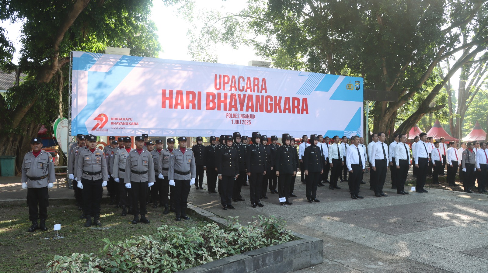 Dengan mengusung tema “Polri untuk Masyarakat”, upacara dipimpin langsung oleh Bupati Nganjuk Dr. Drs. H. Marhaen Djumadi, S.E., S.H., M.M., M.B.A. selaku Inspektur Upacara.