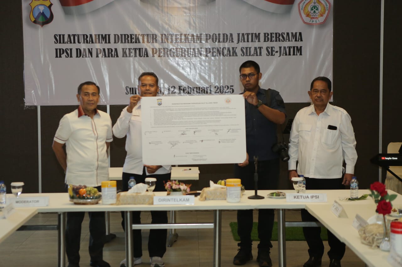SURABAYA, Mediakompas86.com – Polda Jawa Timur melalui Direktorat Intelejen dan Keamanan (Ditintelkam) menggelar silaturahmi bersama para ketua pencak silat se Provinsi Jawa Timur.