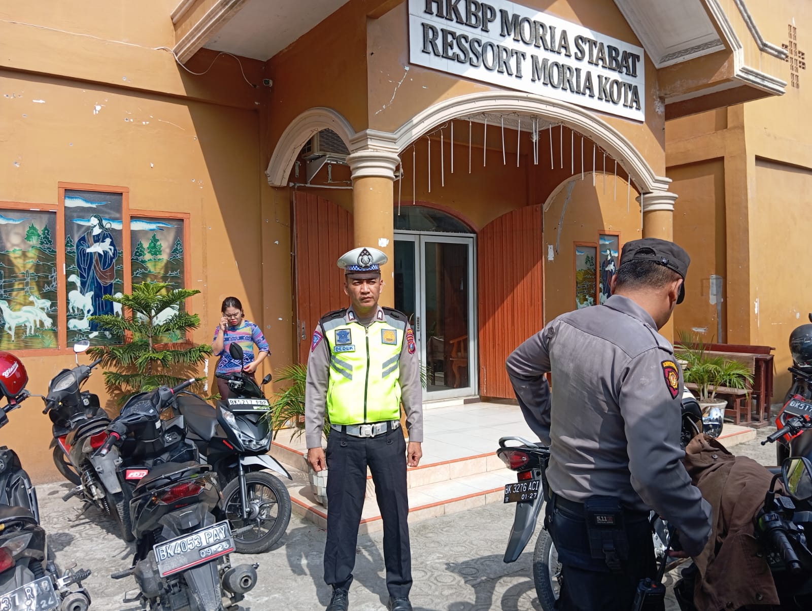 Polres Langkat melakukan pengamanan lokasi gereja pada saat pelaksanaan ibadah perayaan Kenaikan Isa Almasih oleh umat Kristiani. Hal tersebut tampak di gereja – gereja yang ada di wilkum jajaran Polres Langkat, pada Kamis (09/05/2024).