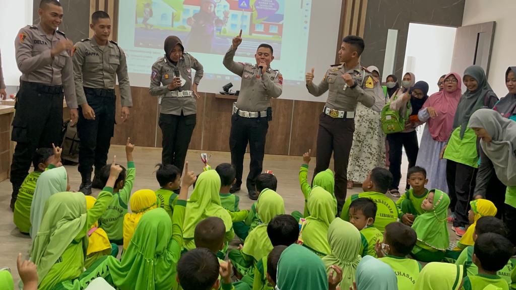 “Kami berikan pengenalan tentang sosok pak Polisi yang mereka lihat sehari-hari dan dari televisi. Kami kenalkan pula tentang kedisiplinan sejak dini, terutama dalam berlalu lintas, yaitu penggunaan helm saat dibonceng orang tuanya,” kata Kasat Lantas