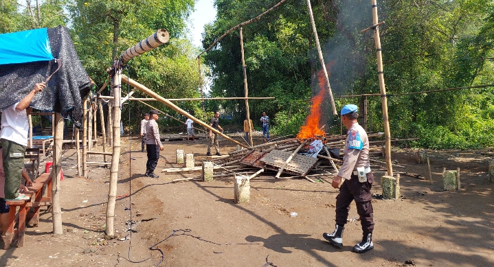 Setiba di lokasi, petugas segera melakukan pengecekan dan memastikan bahwa tempat tersebut merupakan arena yang kerap digunakan untuk sabung ayam. Meskipun tidak ditemukan aktivitas perjudian saat penggerebekan, petugas tetap melakukan pembongkaran dan membakar sarana pendukung seperti pagar dan penutup arena.
