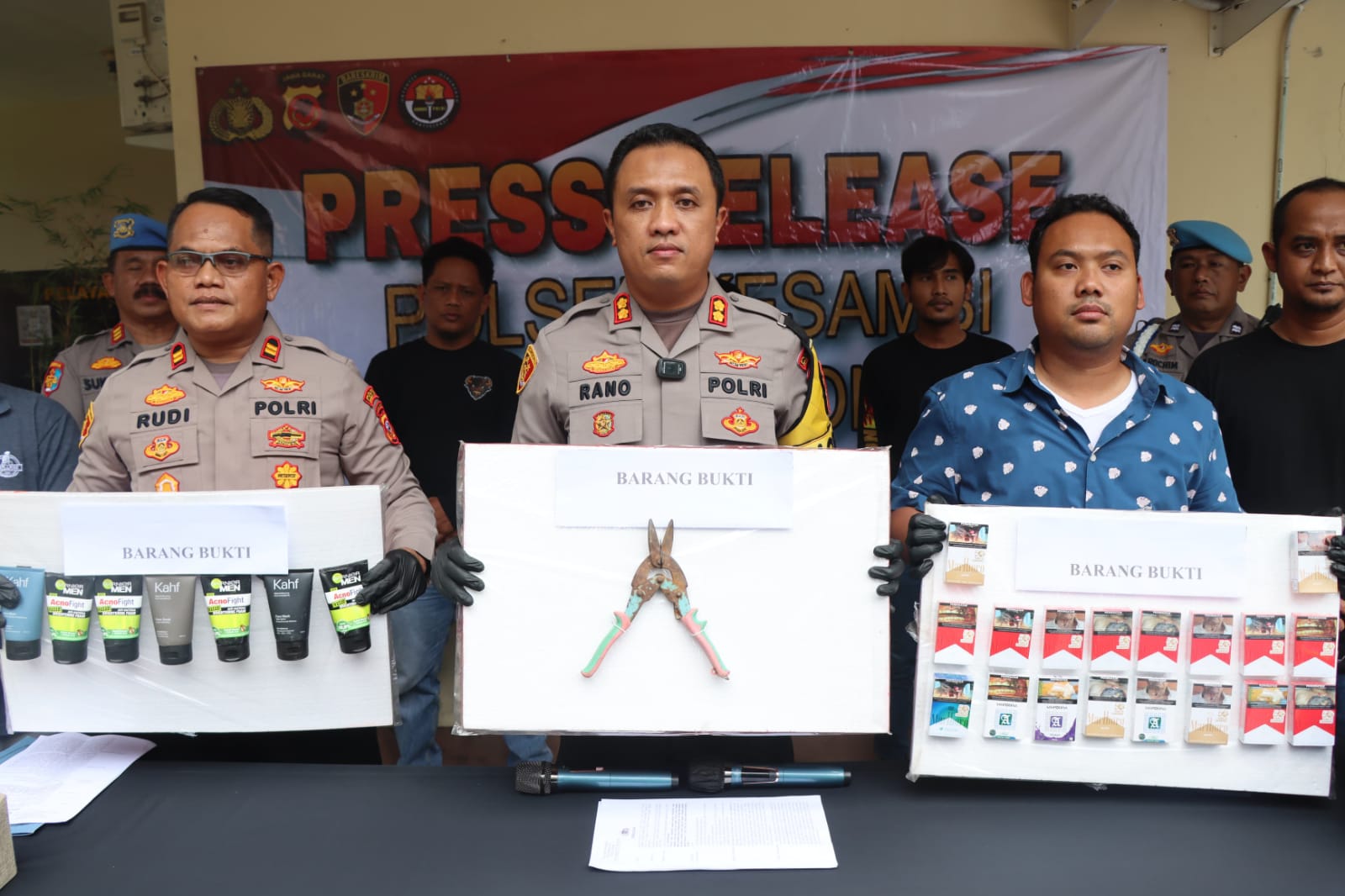 “Jadi pelaku turun melalui tangga dan menjebol Plafond yang terhubung ke lantai bawah Indomaret dan mengambil barang-barang yang berada di etalase toko,” ujar Kapolres saat konferensi pers di Polsek Kesambi, Jum’at (2/2/24).