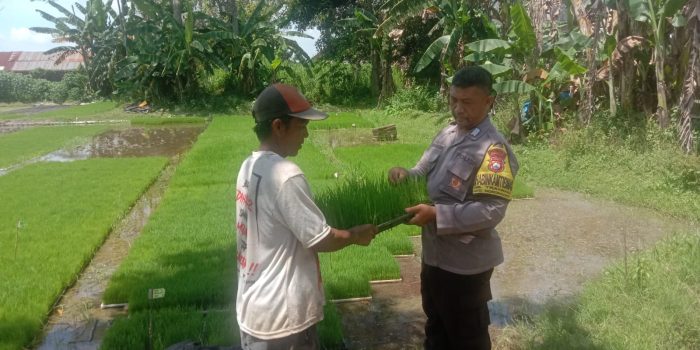 Dalam kegiatan tersebut, Bripka Teguh selaku Bhabinkamtibmas Desa Trayang menyerahkan langsung bibit padi kepada Mujiono, warga yang telah aktif mengelola lahannya secara mandiri dengan kondisi yang terawat baik.