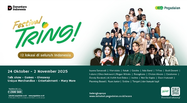 Festival Tring! by Pegadaian bukan hanya tentang bertransaksi, tetapi juga merayakan masa depan finansial yang lebih cerah dan menyenangkan. Catat tanggalnya dan hadiri acara Festival Tring! by Pegadaian. Selengkapnya acara dapat dilihat pada website:www.sahabat.pegadaian.co.id/acara (***)